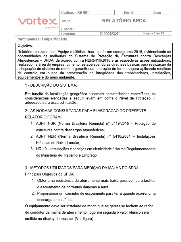 Elaboramos laudos técnicos relacionados com a área elétrica. Emitimos atestado de conformidade elétrica, conforme exigência do corpo de bombeiros, para obtenção do AVCB (Auto de Vistoria do Corpo de Bombeiros).